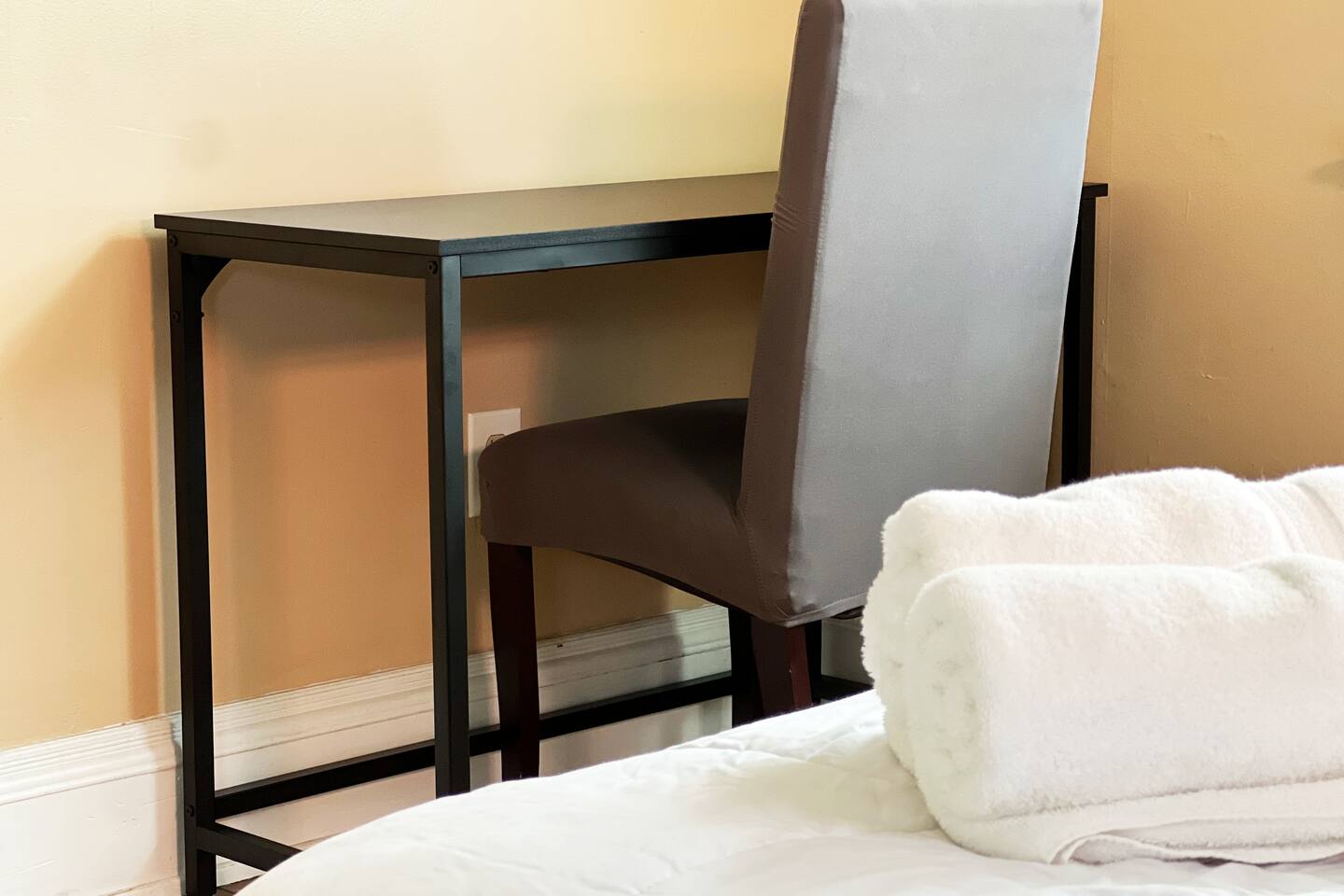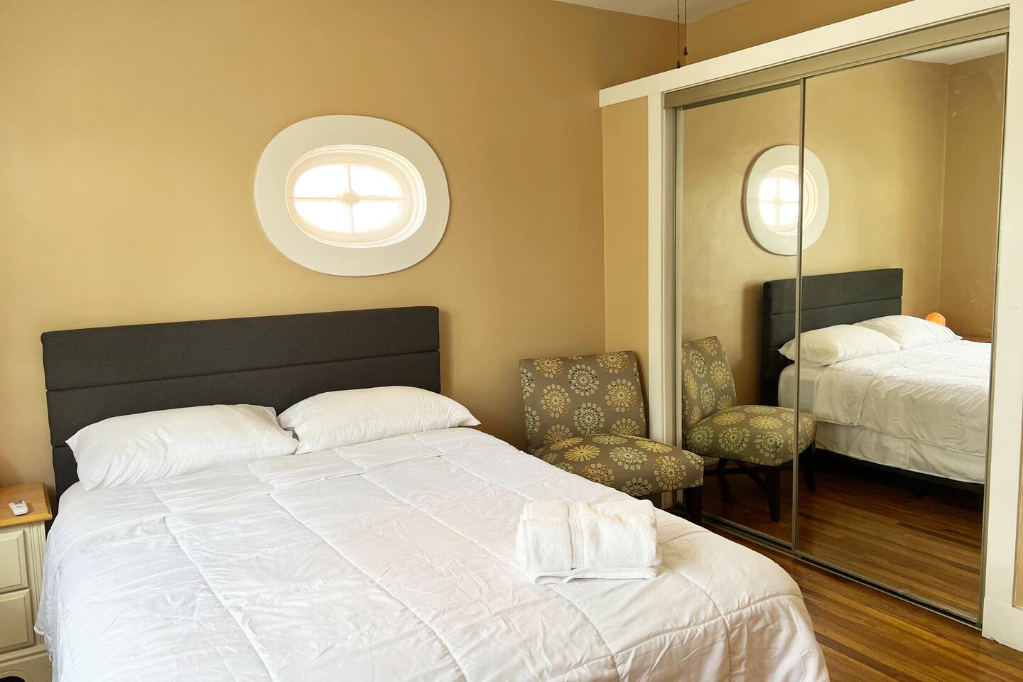 This house has 3 large-sized guest rooms, 2 are located on the second floor, which is where this spacious room is located. Also on the second floor: A full bathroom which is shared between 2 guests. On the first floor another full bathrooms is there. In the basement you will find a set of washer and drier, which is available for you to use at no additional cost. Come for a night, maybe stay for a week or two, many of our former guests do. Also on the first floor there is a spacious living room and dining room, and of course a large kitchen fully equipped, with 2 full size refrigerators.