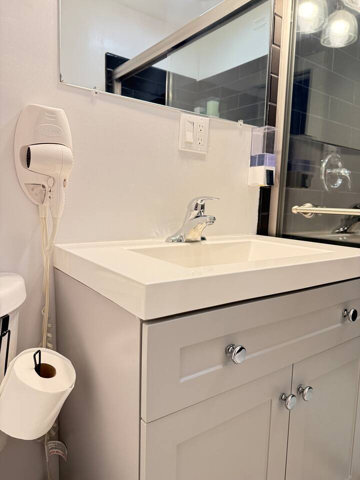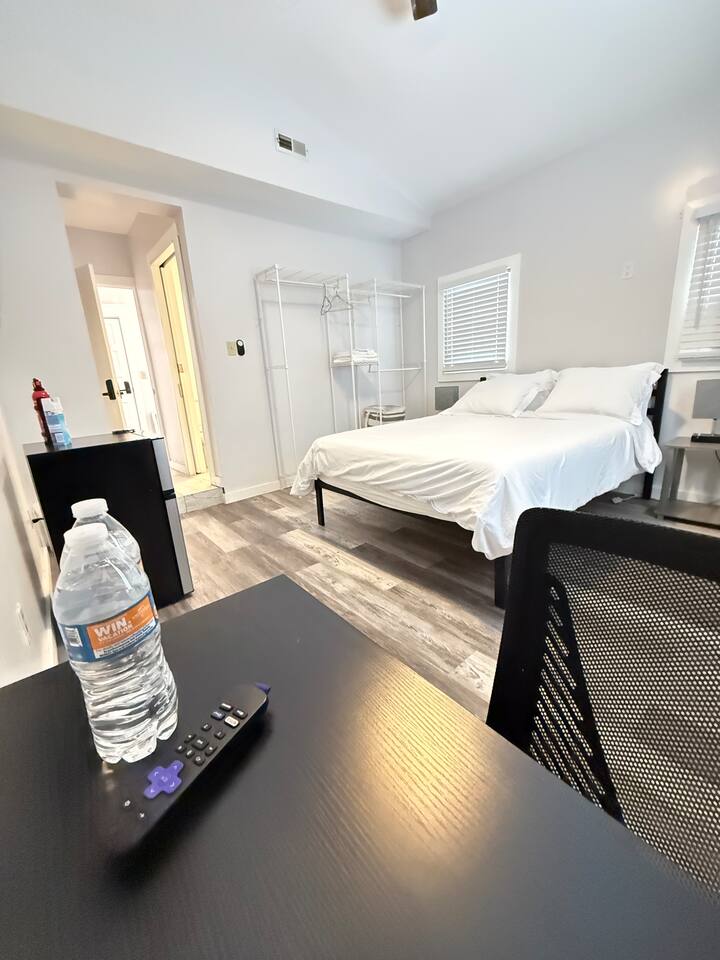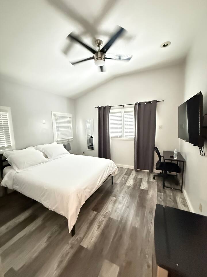 Relax in the Quattro Suite, a spacious 2nd-floor private room with a full en-suite bath, queen bed, 50" TV, and mini fridge in our residence. 10 mins from downtown and 15 from airport. Ideal for professionals, solo travelers, and those coming for a Cavs game. Enjoy access to a full kitchen, shared laundry, and free street parking. No smoking inside ever. The front porch is perfect for a quick smoke. No unregistered guests ever. Great Wi-Fi, clean comfort—your perfect short or long stay.