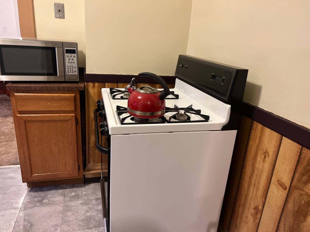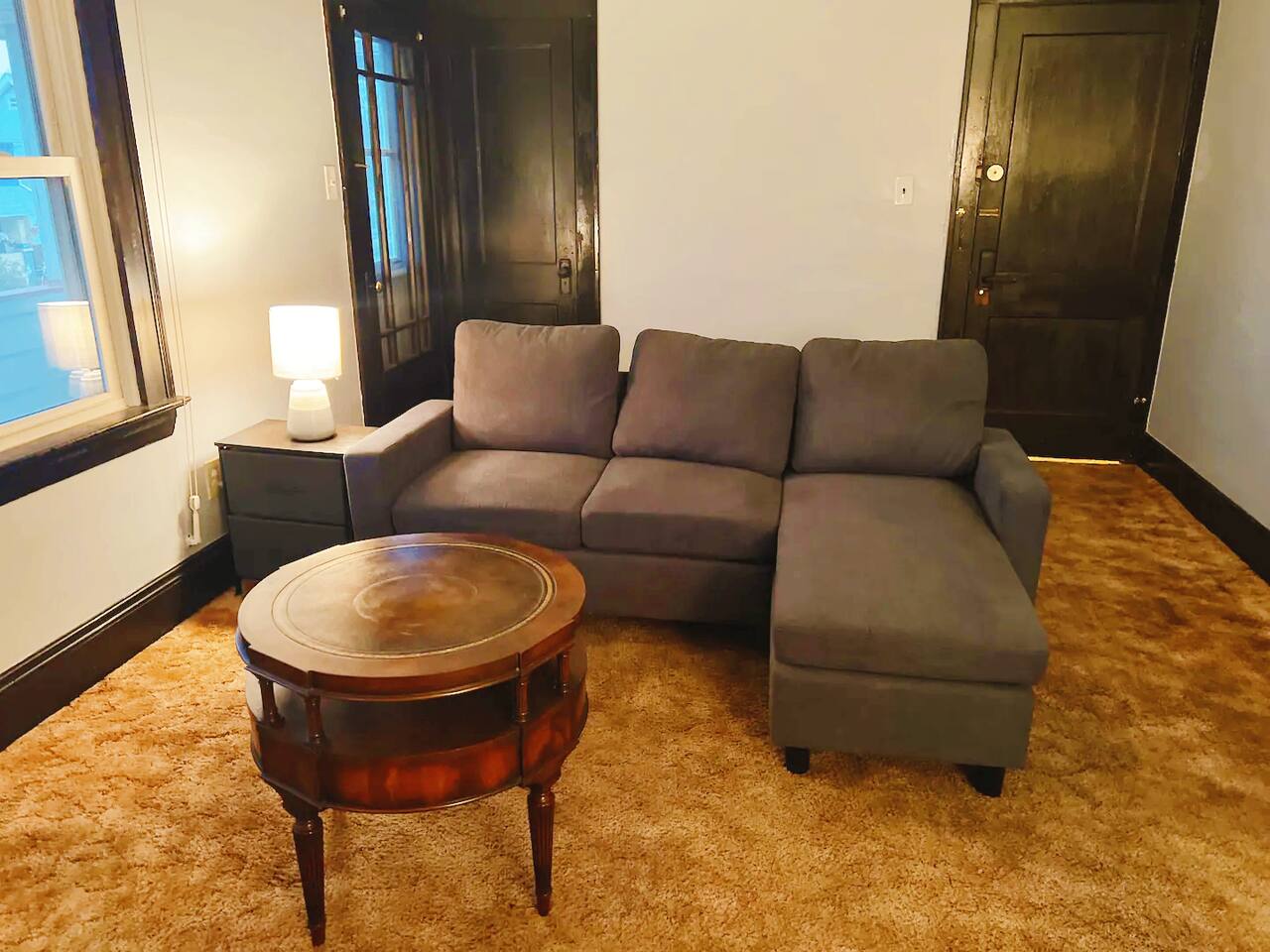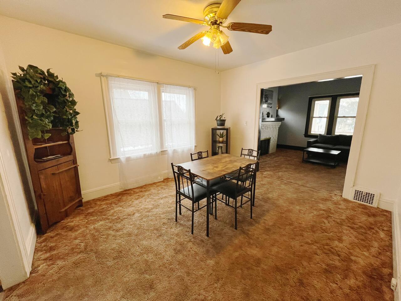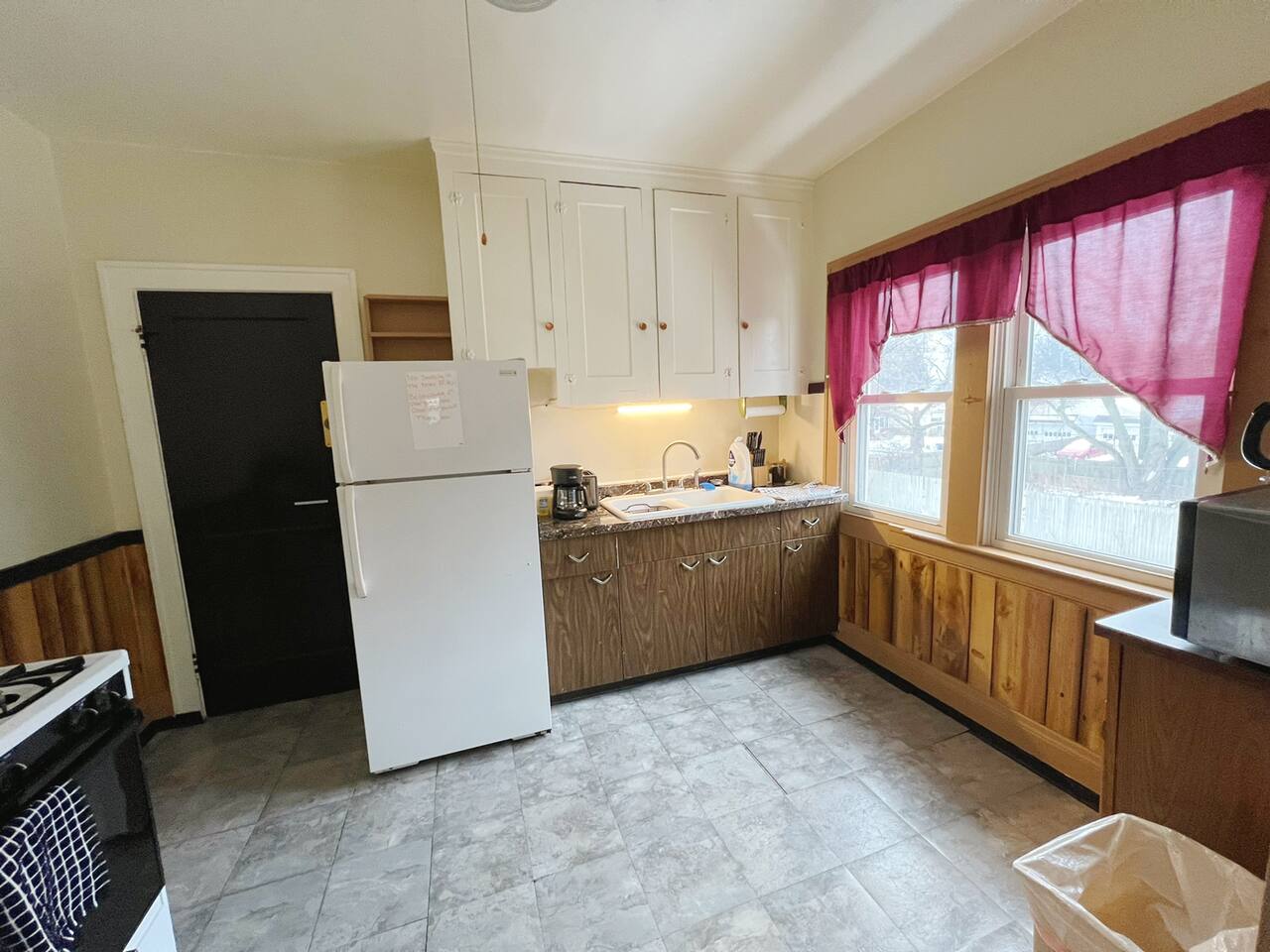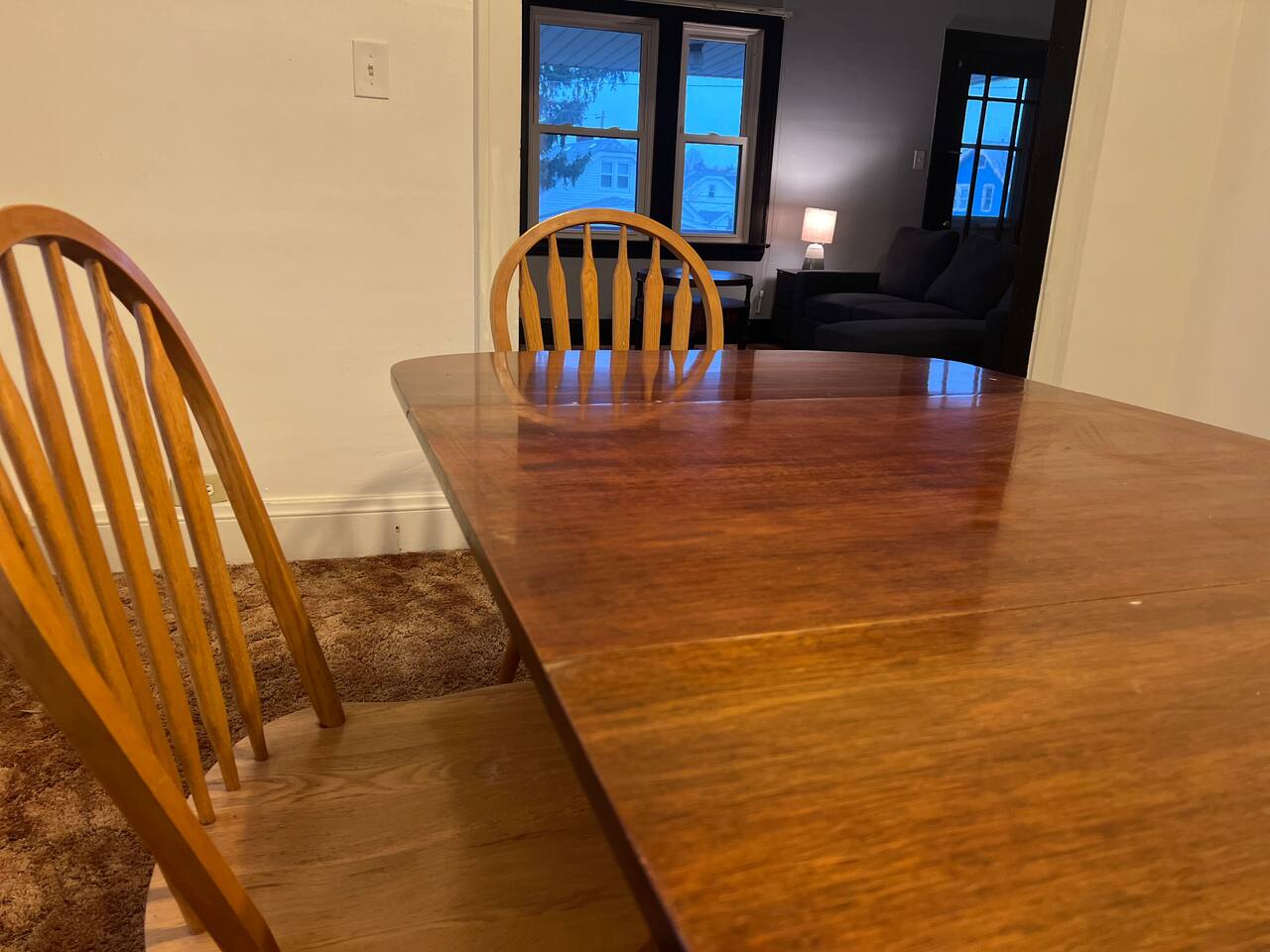 Spacious apartment. Upstairs unit. You can enter through the left door in the front porch, or through the back porch. Decent size kitchen well equipped. 1 shared bathroom.
